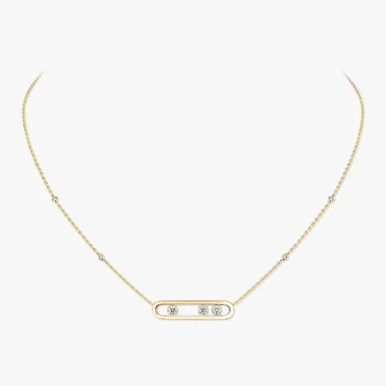 Messika Move Collier. Uitgevoerd in 18krt geelgoud waarin gezet 3 "move" diamanten, met een totaalgewicht van 0,25crt. Kleur G, zuiverheid VS.