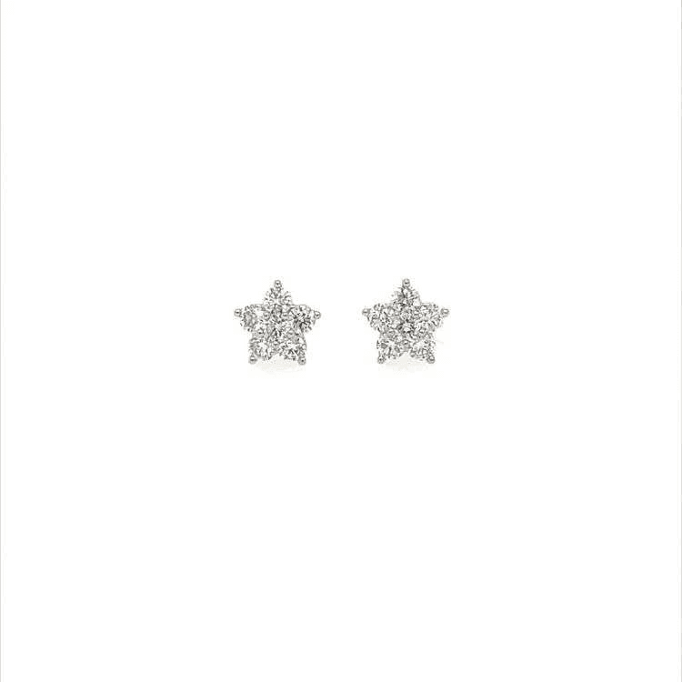 Alberti Ster oorstekers. Uitgevoerd in 18krt witgoud in het midden voorzien van een briljant geslepen diamant met daaromheen briljant geslepen diamanten met een totaalgewicht van 0,52crt. Kwaliteit G/Vs