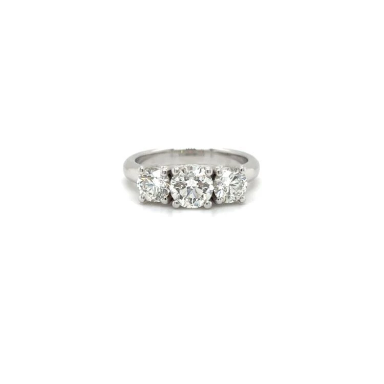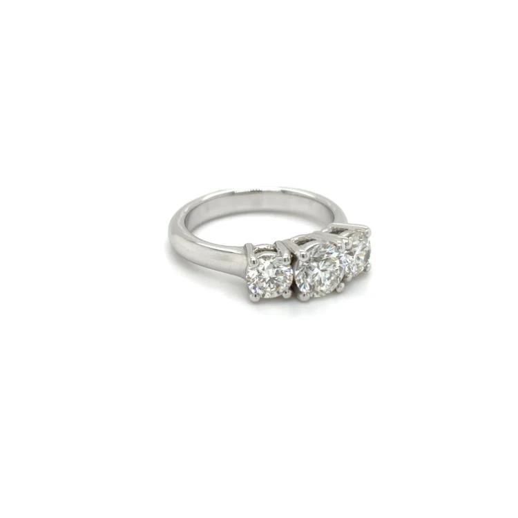 Alberti witgouden rijring waarin het midden gezet een 0.90crt briljant geslepen diamant met aan beide zijden een 0.50crt briljant geslepen diamant, totaalgewicht 1.90crt G-VVS2