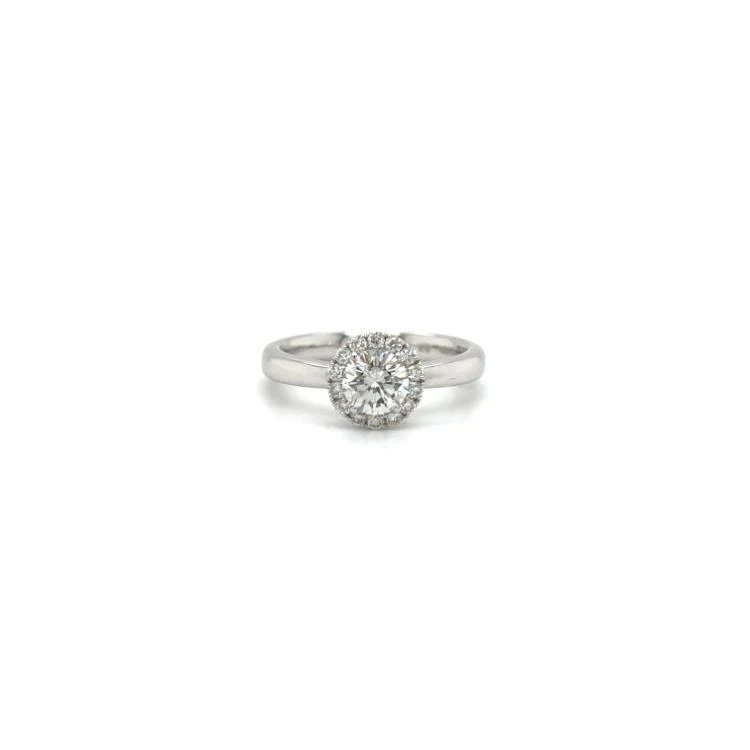 Alberti damesring uitgevoerd in 18krt witgoud waarin het midden gezet een briljant geslepen diamant met een totaalgewicht van 0.74crt met daaromheen briljant geslepen diamanten met een totaalgewicht van 0.23crt. kwaliteit H/Vs