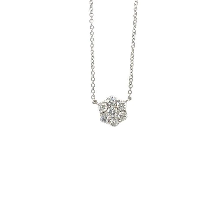 Alberti witgouden collier met rosethanger waarin gezet witte briljant geslepen diamanten met een totaalgewicht van 0.41crt G-VS.