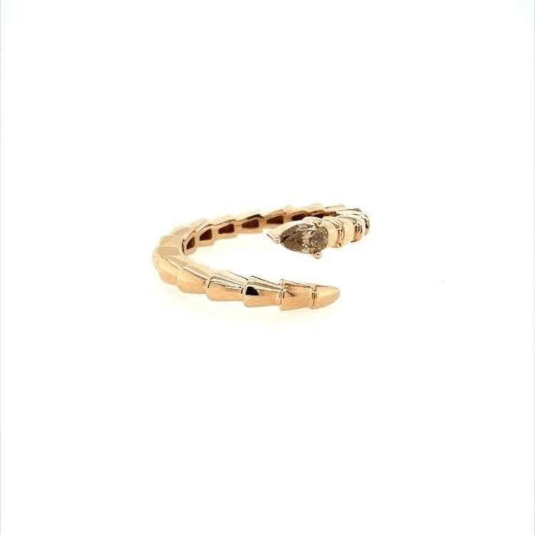Artur Scholl “slang” damesring. Uitgevoerd in 18krt rosegoud waarin gezet een champagnekleurig peer geslepen diamant van 0.33ct.