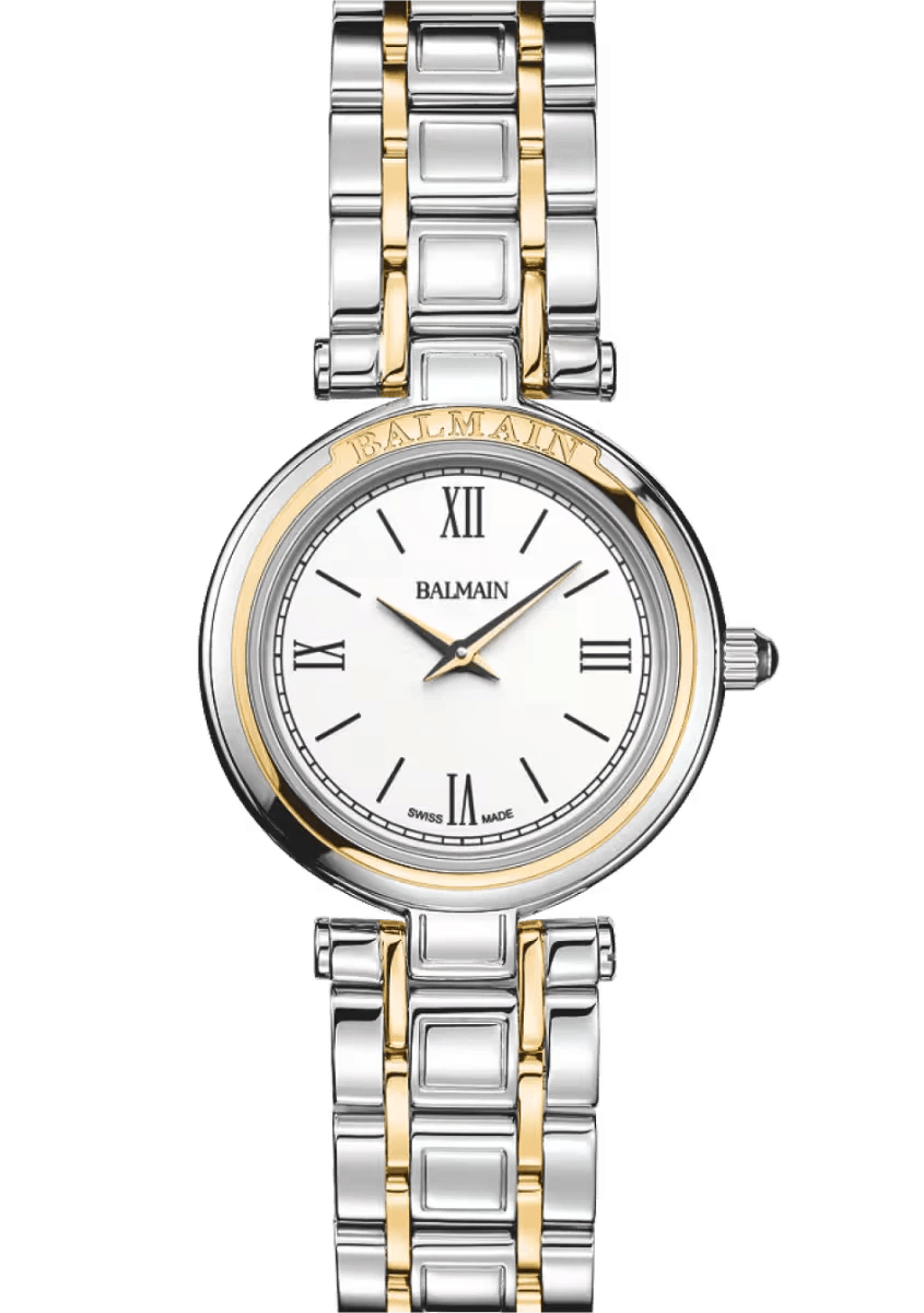 Balmain Haute Elegance horloge. Uitgevoerd met een 24mm bicolor kast. Voorzien van een witte wijzerplaat en index. Het horloge heeft een quartz uurwerk en een waterdichtheid van 50m.