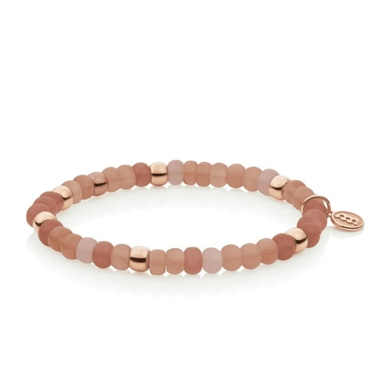 Bron Reflex mixarmband mix85 uitgevoerd met diverse bruintinten maansteen en rosegouden elementjes.