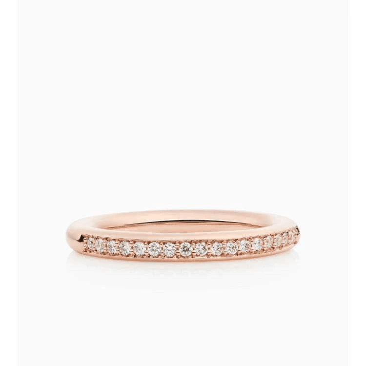 Bron Stax damesring. Uitgevoerd in 18krt rosegoud voorzien van witte briljant geslepen diamanten met een totaalgewicht van 0,35crt.