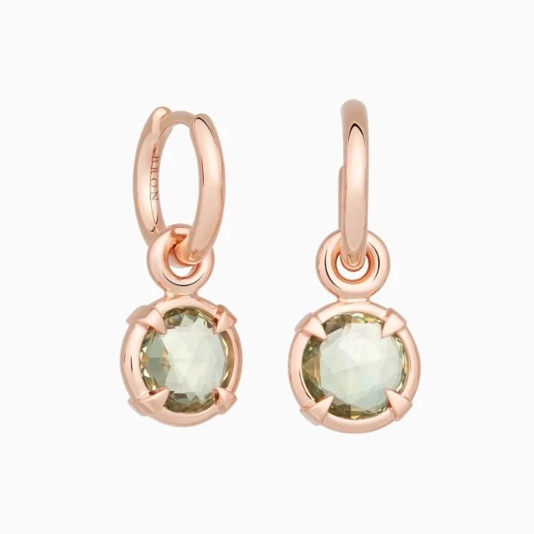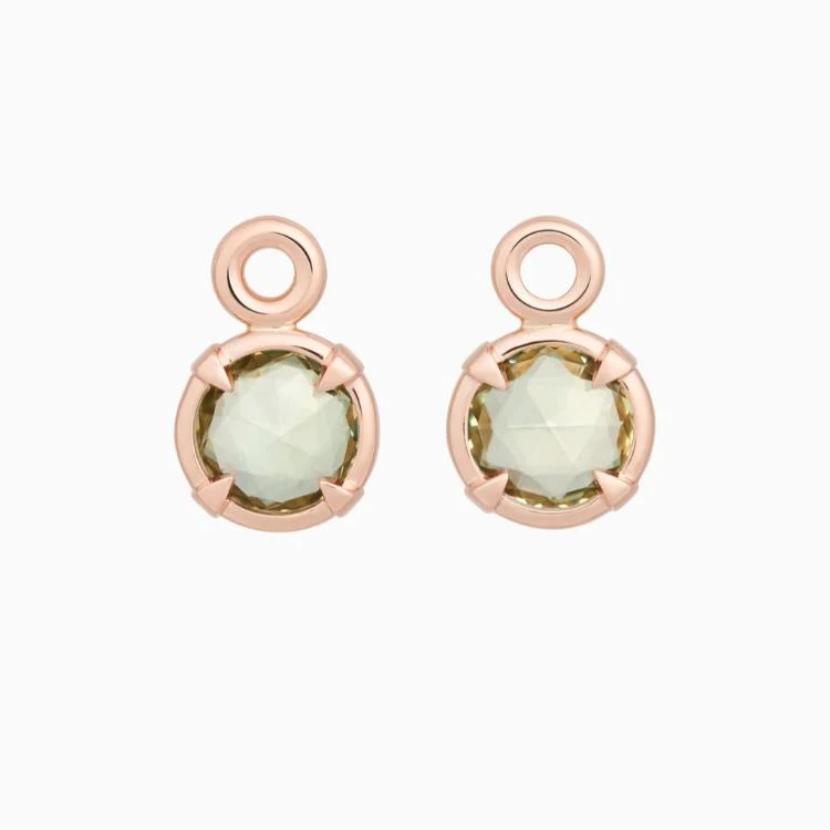 Bron Mira Mira aanhangers. Uitgevoerd in 18krt rosegoud voorzien van 8mm briolet geslepen lemonquartz. Passend aan oorringen van de Lux serie.