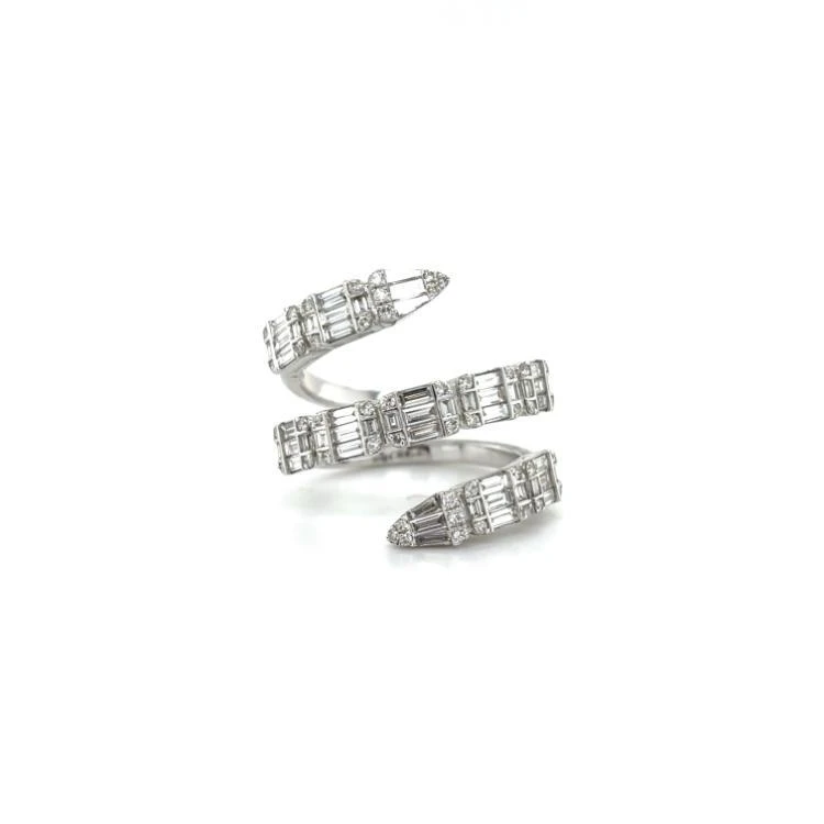 Djula Spiral Beverly Hills Ring. Uitgevoerd in 18krt witgoud , waarin gezet witte briljant en baguette geslepen diamanten met een totaalgewicht van 1,26crt.