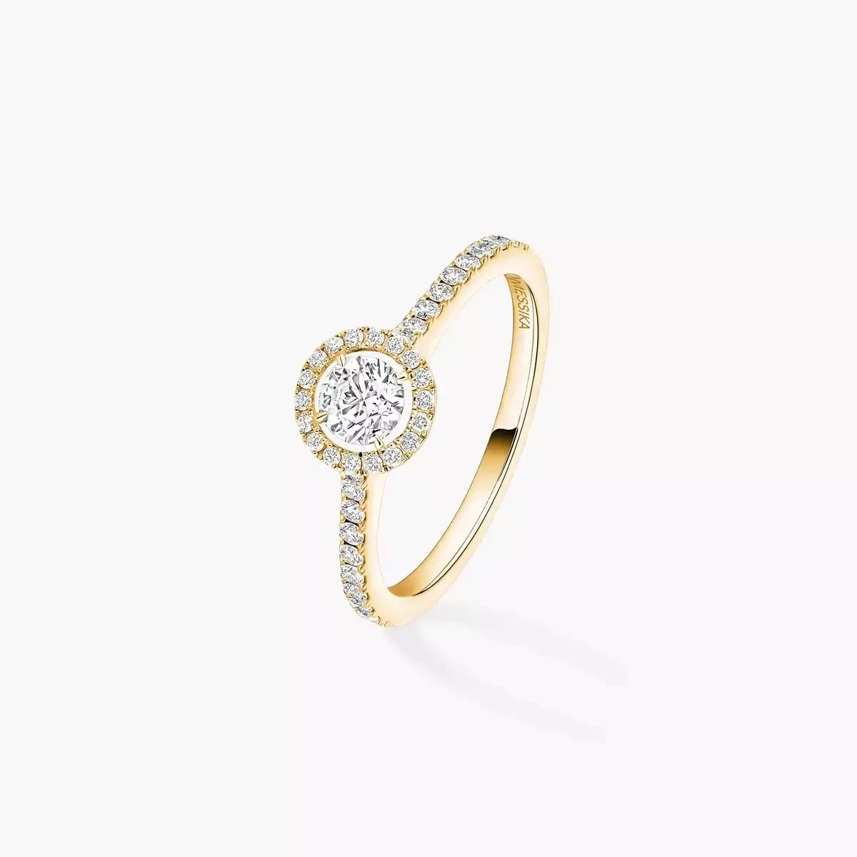 Messika Joy Diamant rond 0,25ct ring. Uitgevoerd in 18krt geelgoud waarin gezet een briljant geslepen diamant met daaromheen witte briljant geslepen diamanten met een totaalgewicht van 0,75crt.
