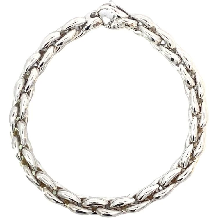 Monzario 14krt witgouden fantasie schakelarmband. De armband heeft een breedte van 8mm.