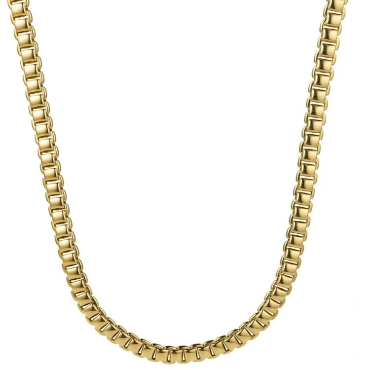 Monzario collier. Uitgevoerd in 14krt geelgoud. Het collier is 6mm breed en heeft een lengte van 45 cm.