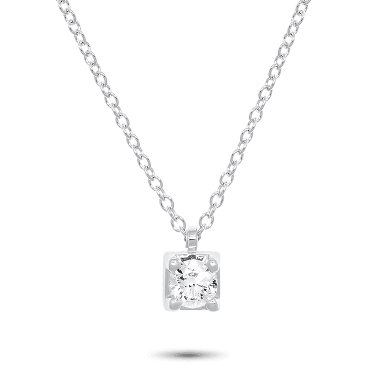 Pijnenburg Collectie Solitair collier. Uitgevoerd in 18krt witgoud voorzien van een 4-poots chaton waarin gezet een briljant geslepen diamant met een totaalgewicht van 0,09crt. Kleur F, zuiverheid SI.