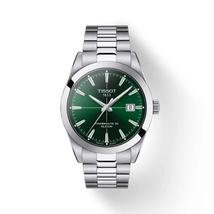 Tissot Geltleman horloge. Uitgevoerd met een 40mm stalen kast, voorzien van een groene wijzerplaat en een stalen band. Het horloge heeft een automatisch uurwerk, met een gangreserve tot 80 uur en een waterdichtheid van 100m.