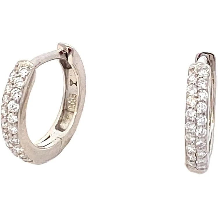 Monzario oorringen.Uitgevoerd in 14krt witgoud, bezet met pave briljant geslepen diamanten,totaalgewicht 0,24crt, W/Si.