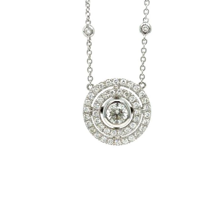 Artur Scholl witgouden collier met een roset hanger waarin in het midden gezet een briljant geslepen diamant met een totaalgewicht van 1.00crt met daaromheen twee cirkels waarin gezet witte briljant geslepen diamanten met een totaalgewicht van 1.23crt G-VS.